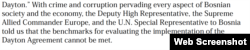 Već sami naslov „Kriminal i korupcija prijete provedbi Dejtonskog mirovnog sporazuma“ upućuje na stanje korupcije u zemlji nakon rata.